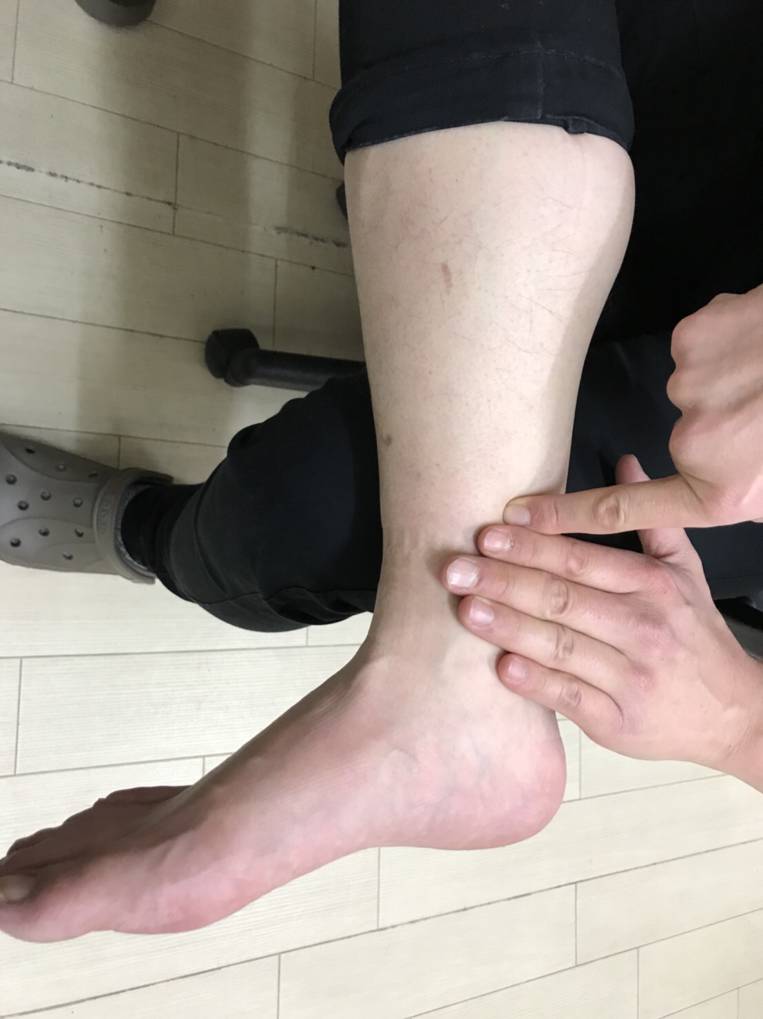 足首の内くるぶしから指4・5本分上の骨のくぼみの後ろ側ちなみに押して飛び上がれば場所はそこでd(^_^o)