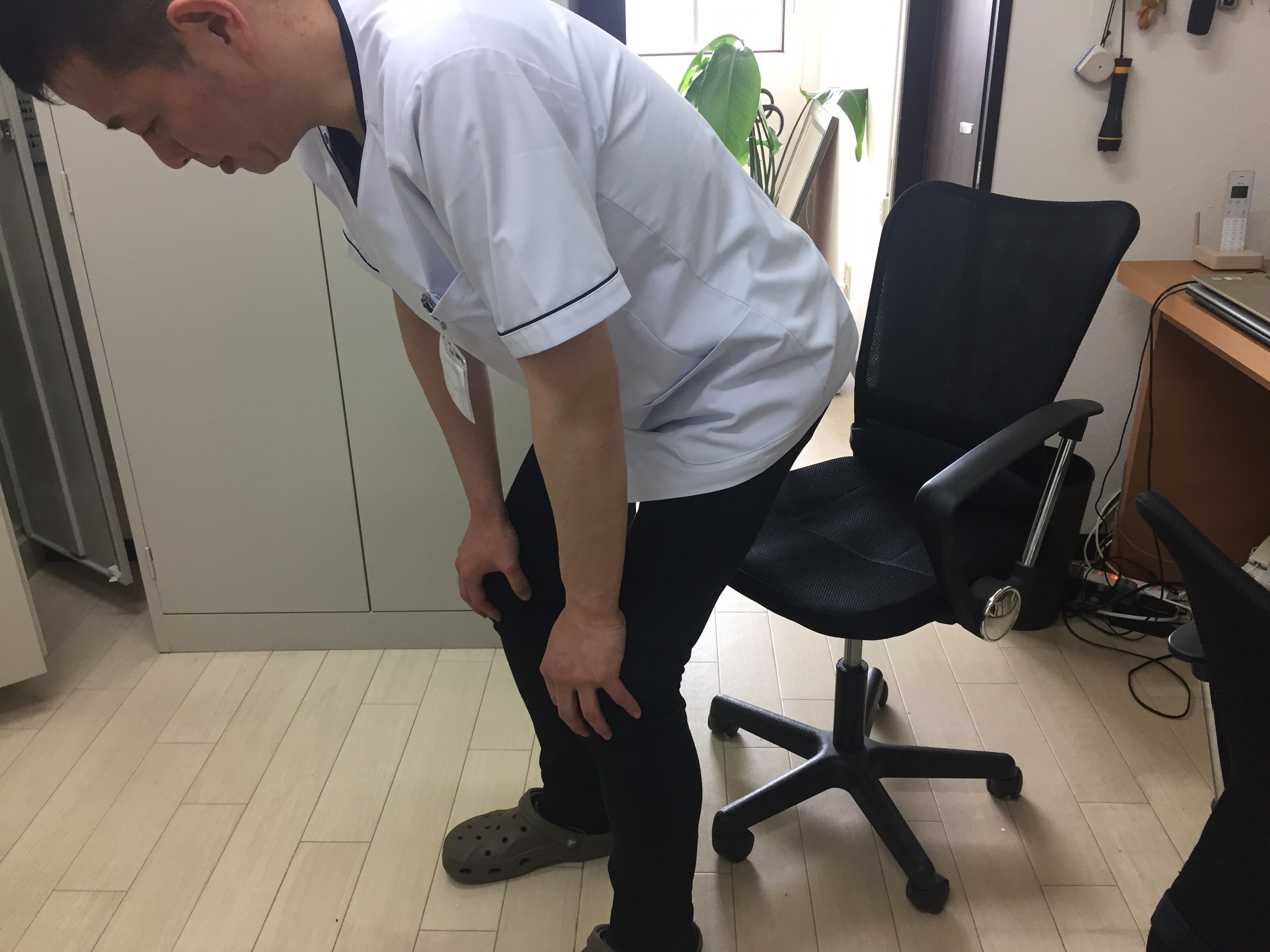 感覚が残った状態で、膝に手を当てたまま立ち上がってみて下さい。