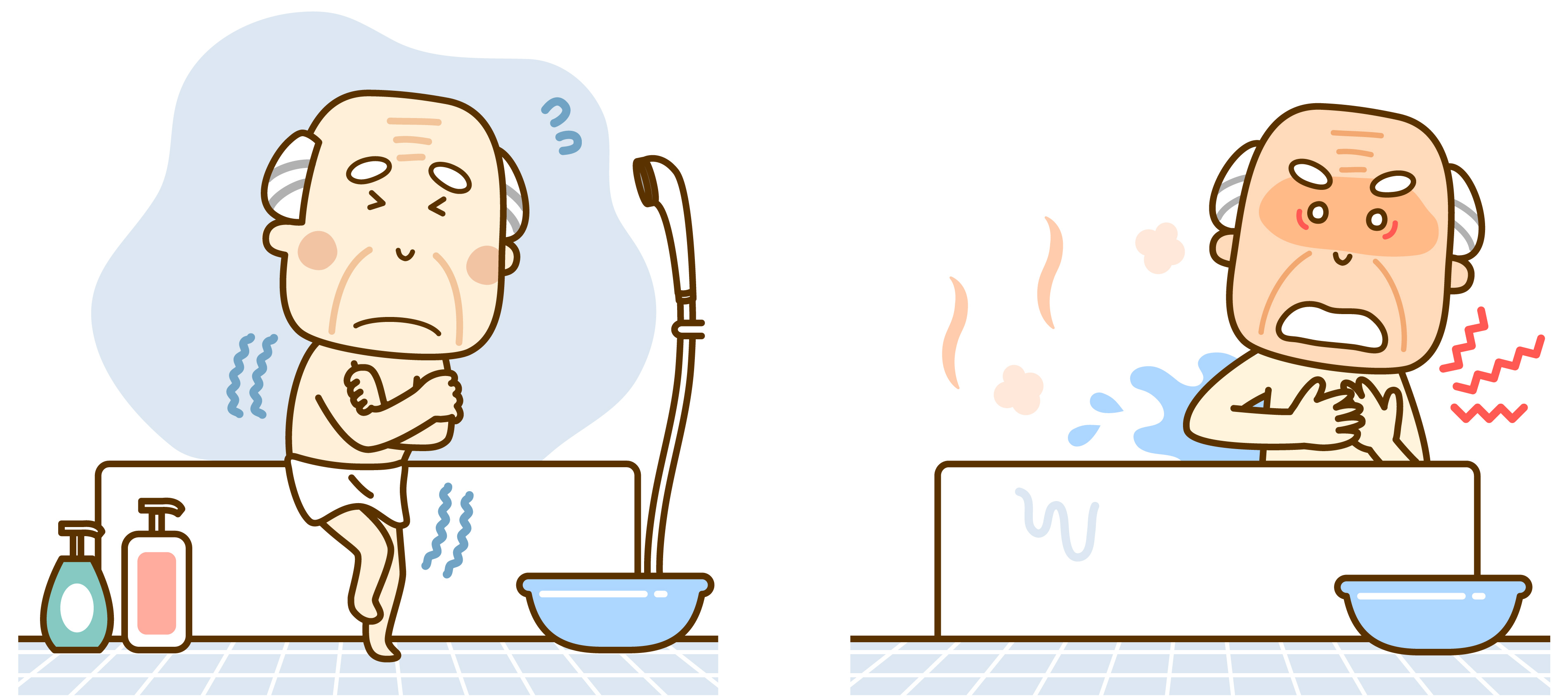 温かい部屋から寒い部屋へ移動するときや、寒い脱衣場から暑いお風呂につかる時などに血圧の急激な変動には要注意です💦