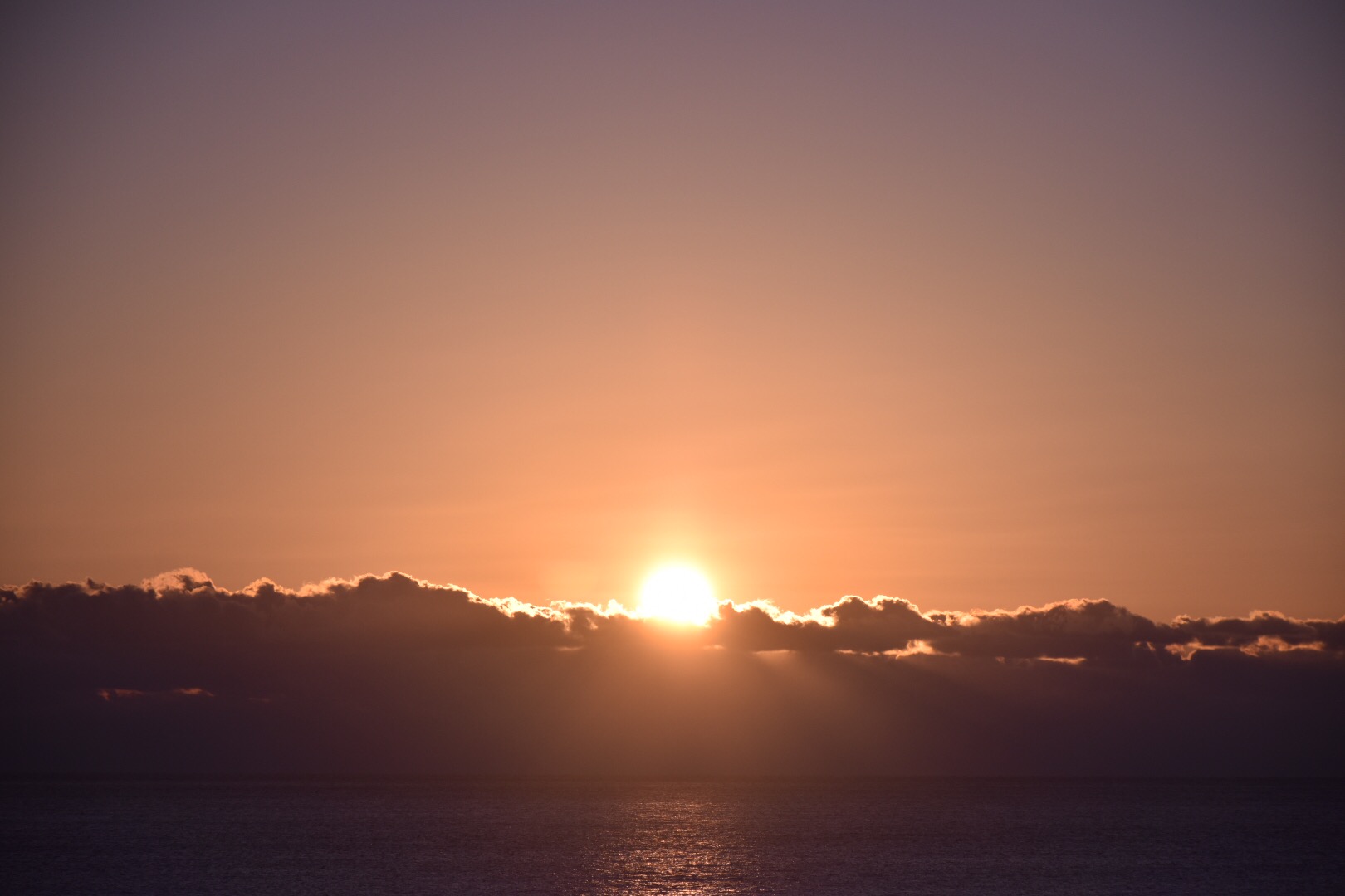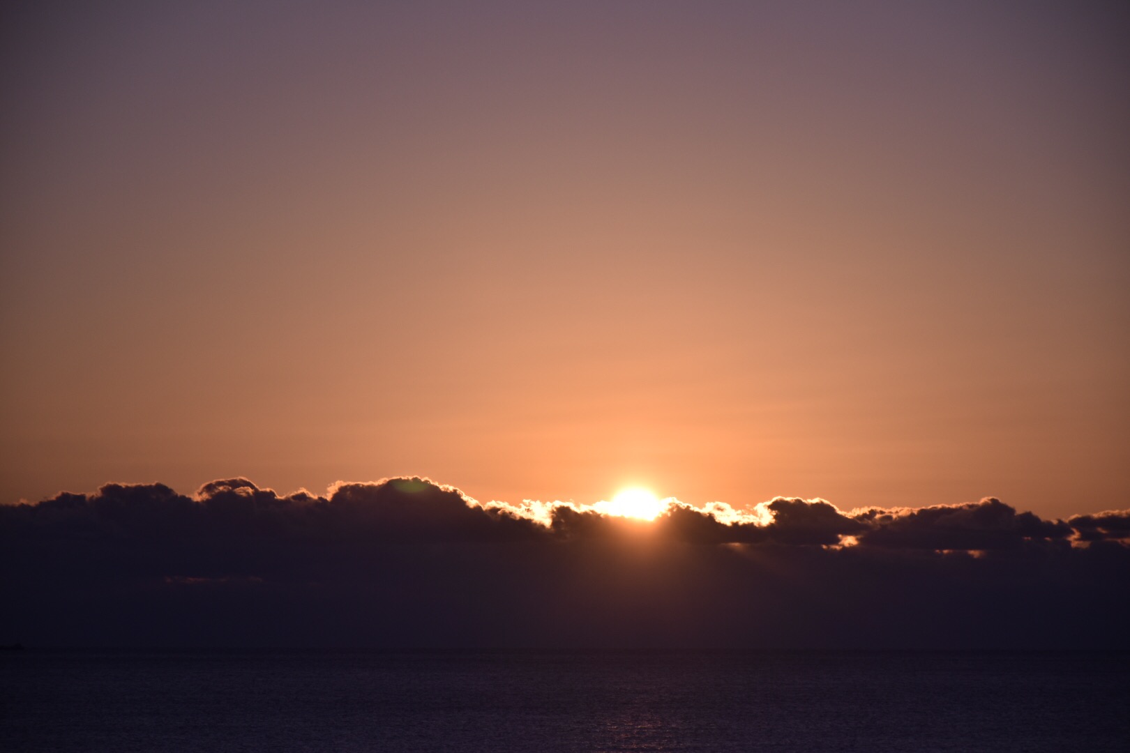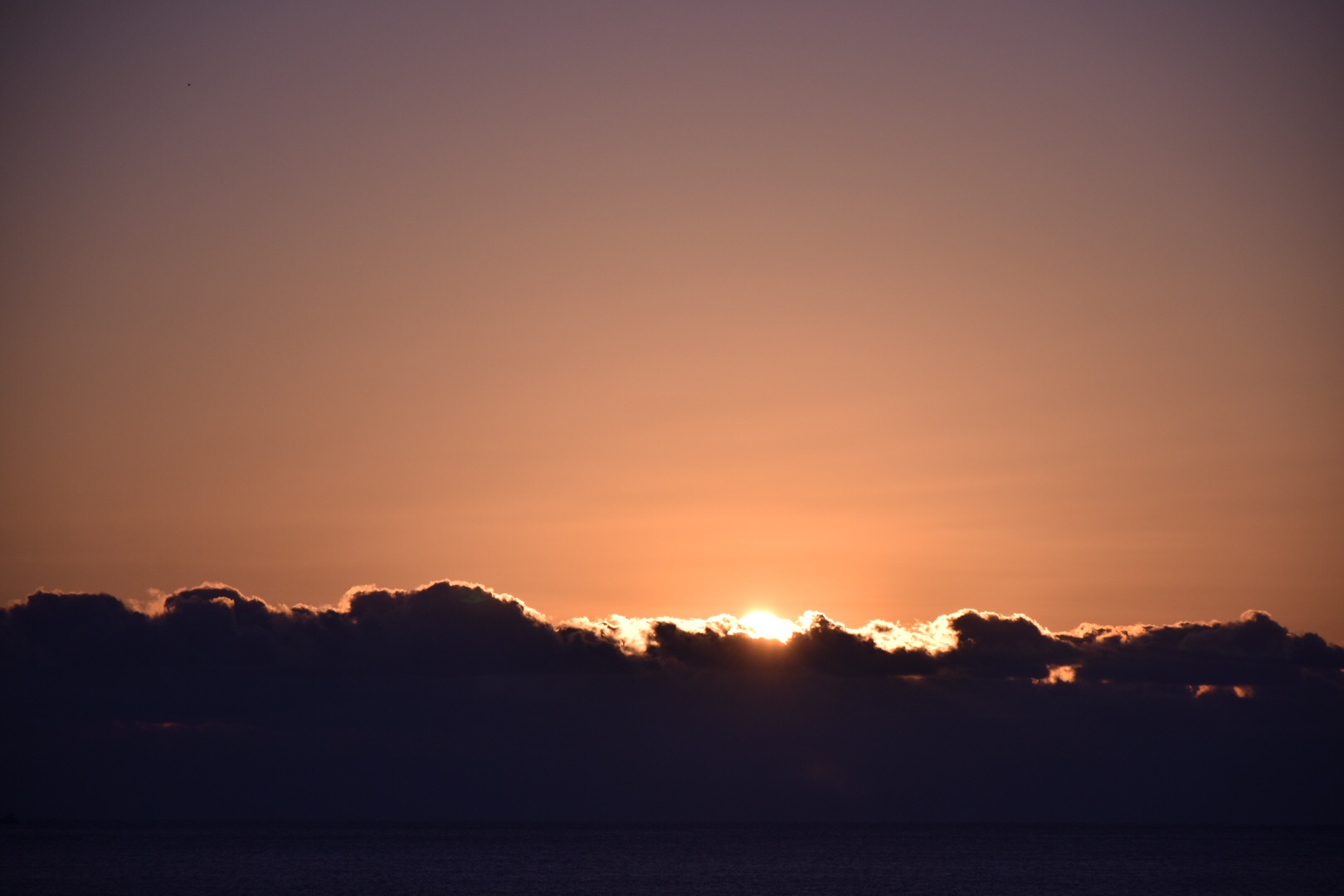 残念ながら、海の上に雲があって太陽が顔を出すのはその上からということになりそうです。
