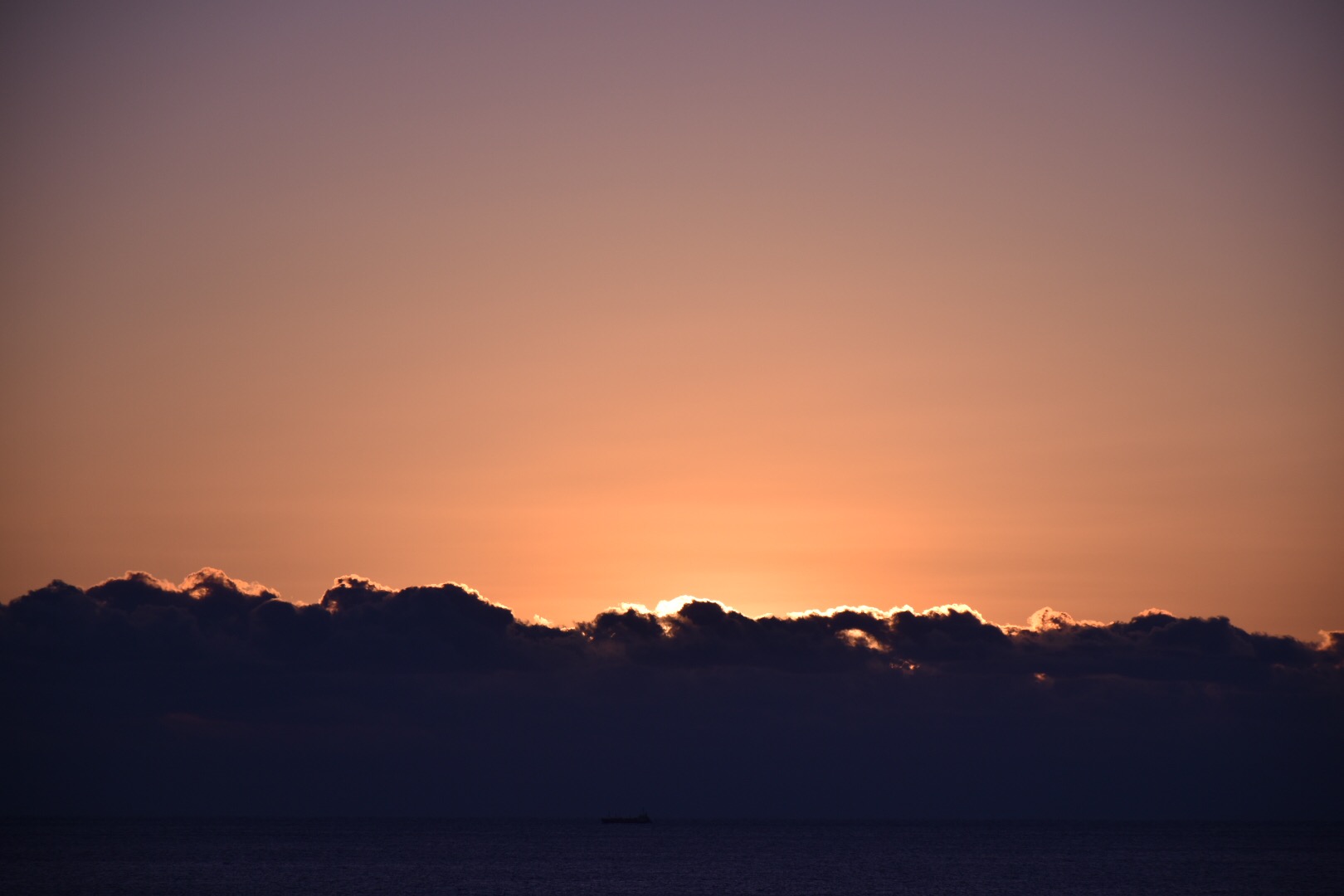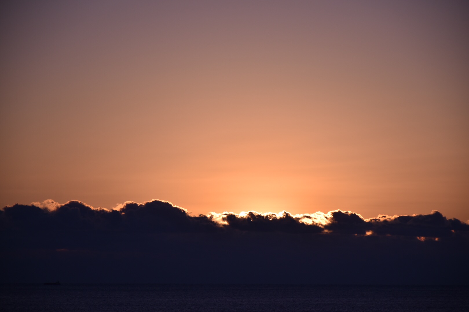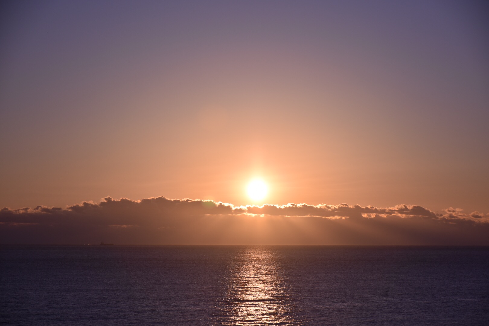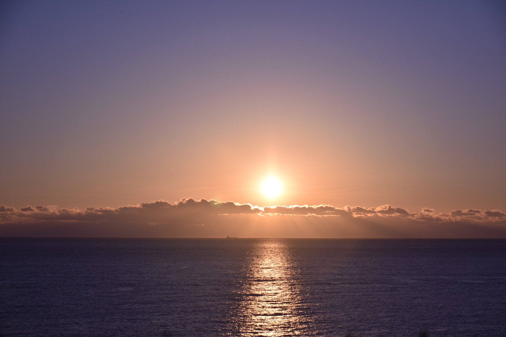 残念ながら、海の上に雲があって太陽が顔を出すのはその上からということになりそうです。