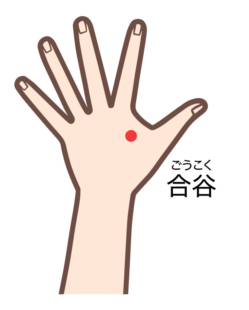 手の甲の、親指と人差し指の骨が交わるところにあるツボです。古くから「万能のツボ」と呼ばれ、風邪の初期症状や発熱、頭痛、免疫力の低下にも用いられてきました。