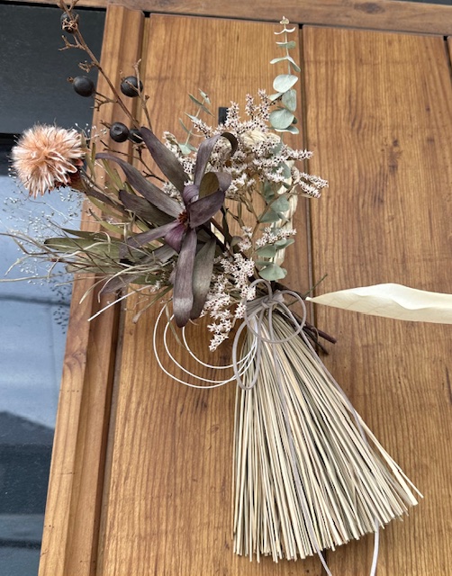 話は変わりますが、今年は初めてしめ縄を自分で作り玄関に飾りました。写真撮った時は強風後で形が少し崩れてしまっていますが、自分で選んで作ったものを飾ることが出来て満足しています。