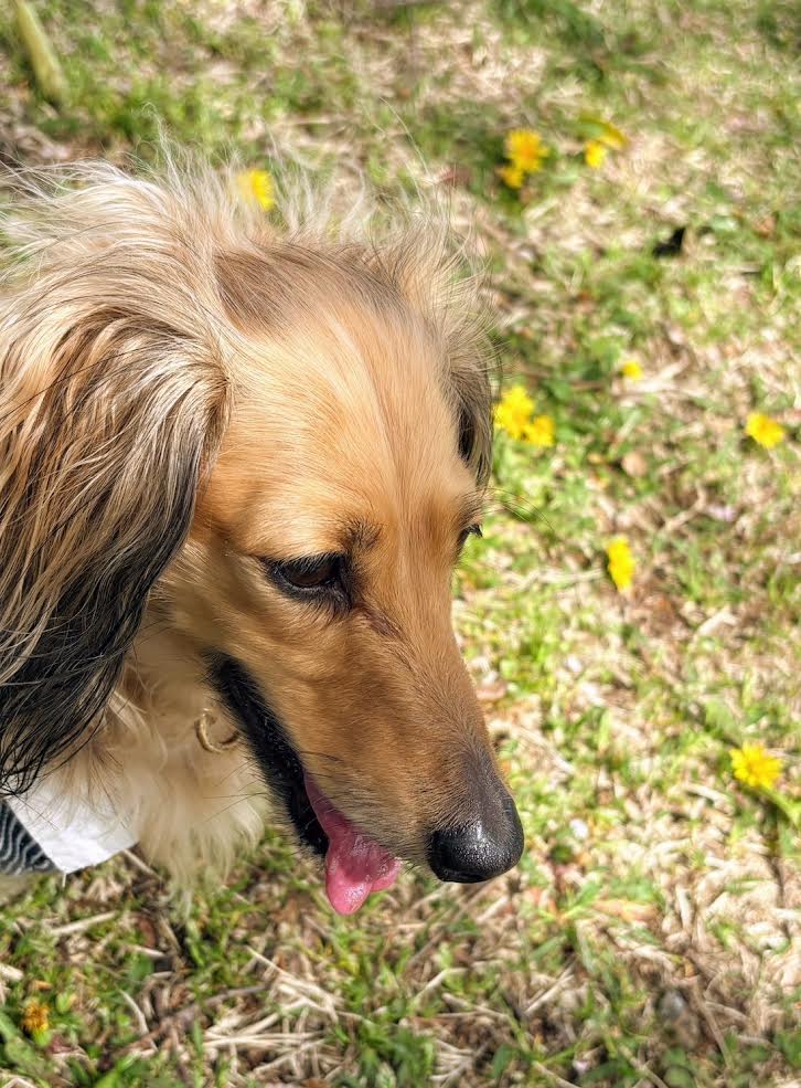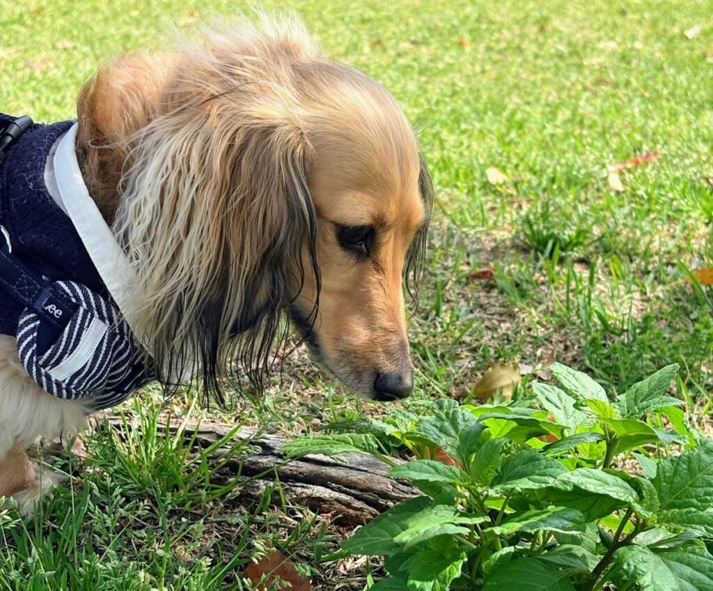 ワンコも久しぶりに柔らかい芝の上を歩いて上機嫌。