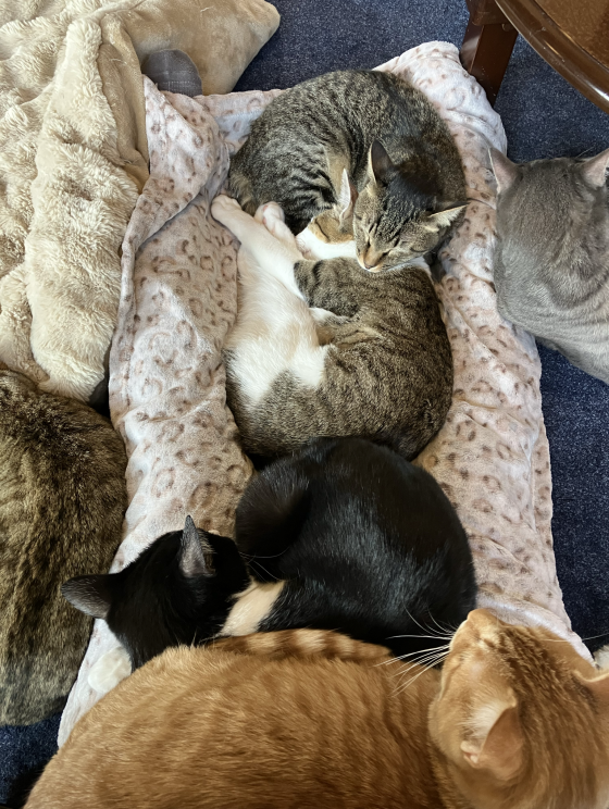 私のリラックス方法は大好きなにゃんこに会うことです。寒くなると暖かさを求めて、足の上がにゃんこで渋滞します。(足の上は4匹が限界です😿)